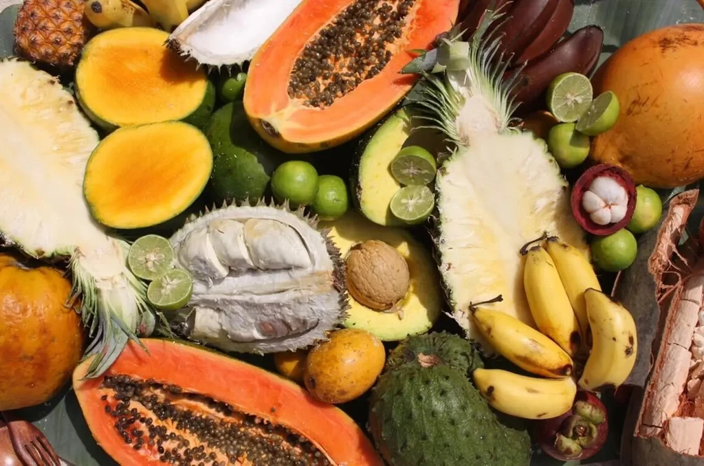 Mango, ananas, avokádo, banány všech velikostí a barev, Jackfruit – král ovoce, dračí ovoce, mangosteen, rambutan, hadí ovoce
