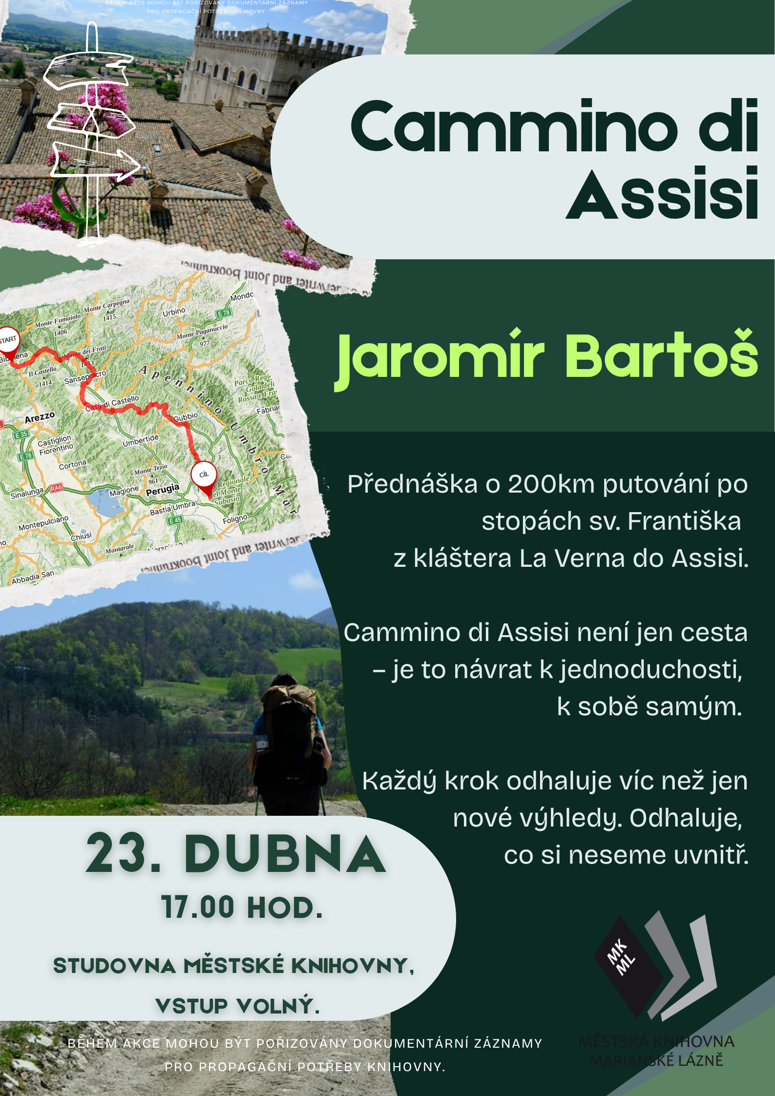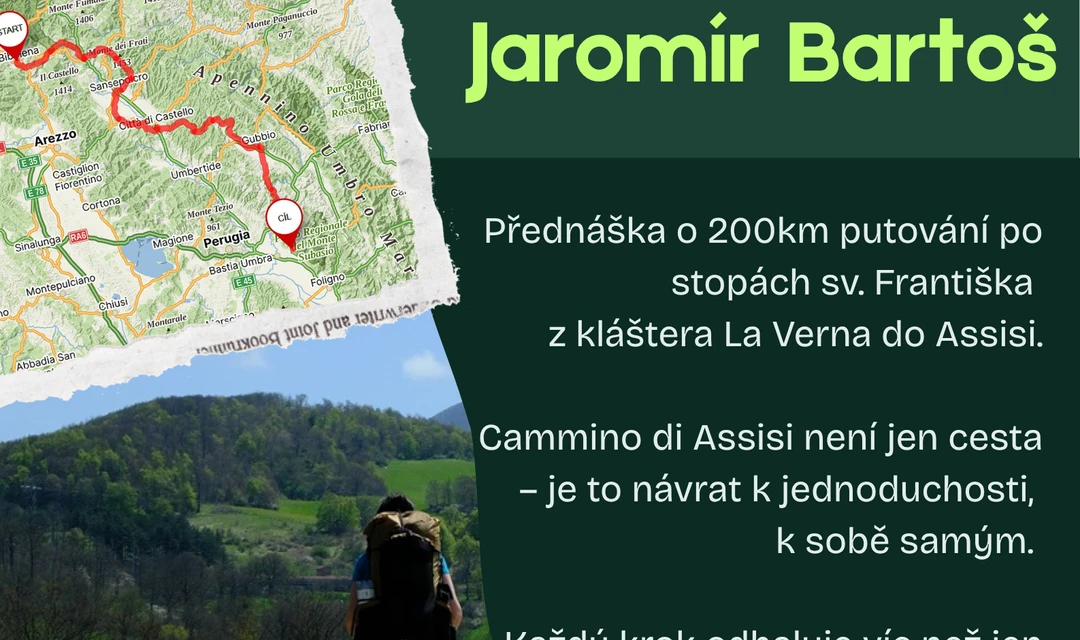 Přednáška o 200km putování po stopách sv. Františka z kláštera La Verna do Assisi. Cammino di Assisi není jen cesta . Je to návrat k jednoduchosti, k sobě samým. Každý krok odhaluje víc než jen nové výhledy. Odhaluje, co si neseme uvnitř.