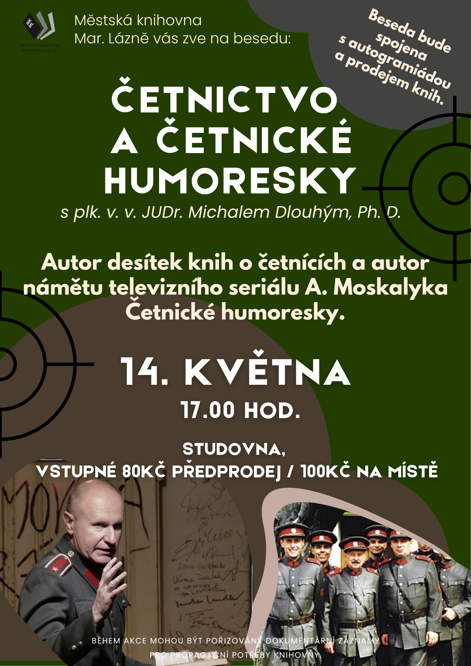 Autor desítek knih o četnících a autor námětu televizního seriálu A. Moskalyka Četnické humoresky. Beseda bude spojena s autogramiádou a prodejem knih.