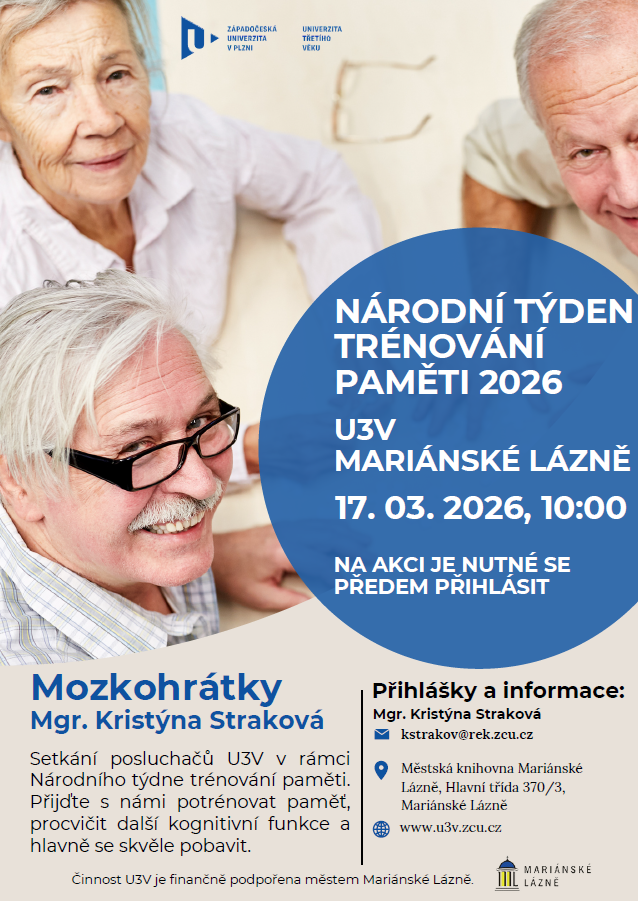 Setkání posluchačů U3V v rámci Národního týdne trénování paměti. Přijďte s námi potrénovat paměť, procvičit další kognitivní funkce a hlavně se skvěle pobavit.